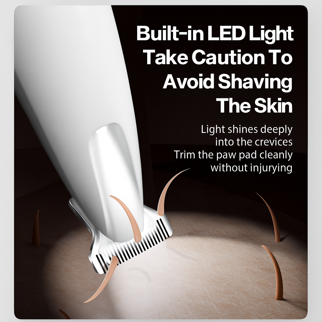 With a tiny light to help you see, no cord to tangle, and no mess to worry about, paw care is a breeze! It’s super quiet and easy to hold, so your pet stays happy while you make their paws neat and tidy. Grooming at home is now fun and easy!